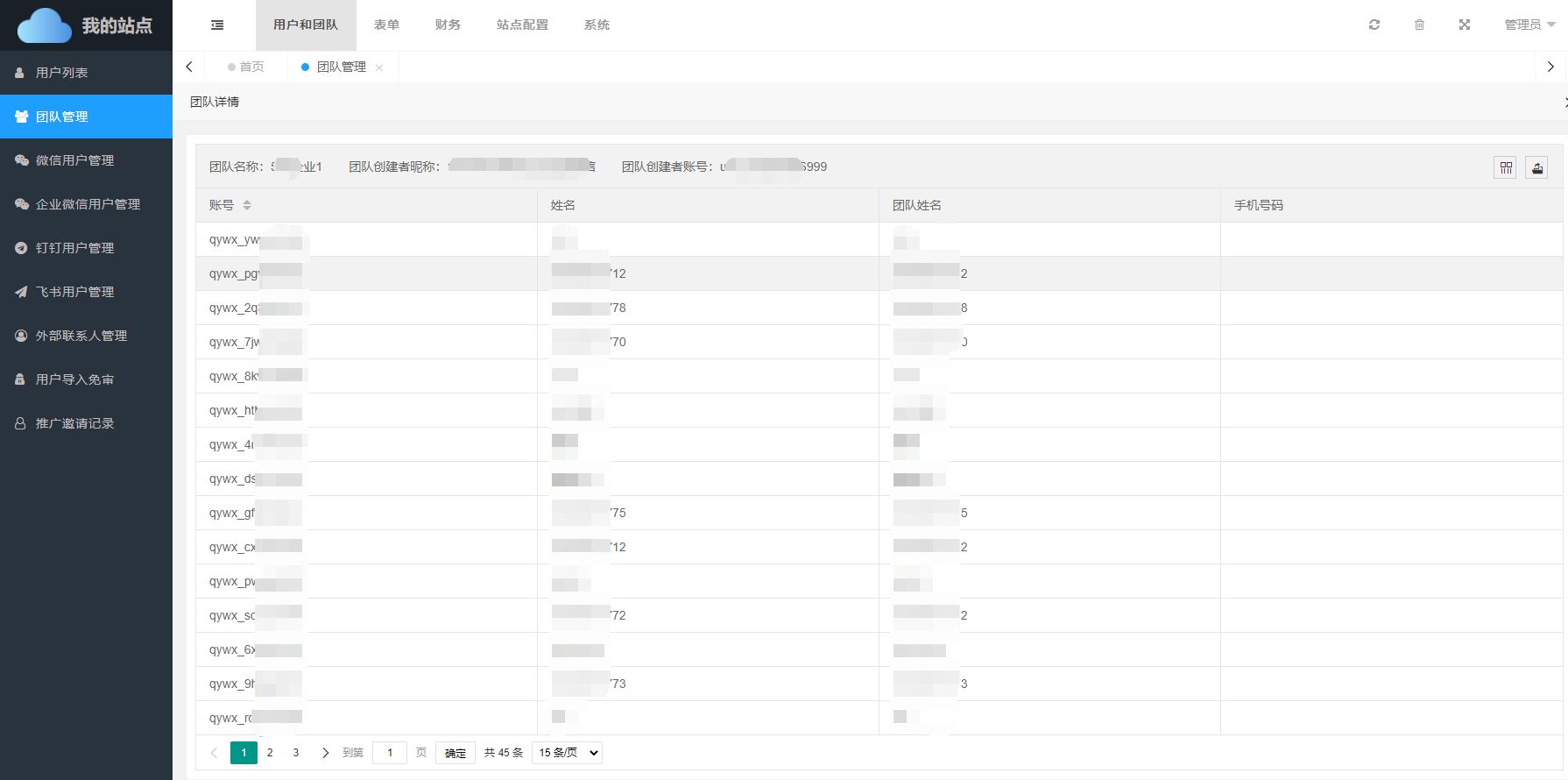 团队管理列表所展示的都是系统内已存在的团队的具体信息,通过团队管理,管理员可快速掌握平台内注册的团队情况。