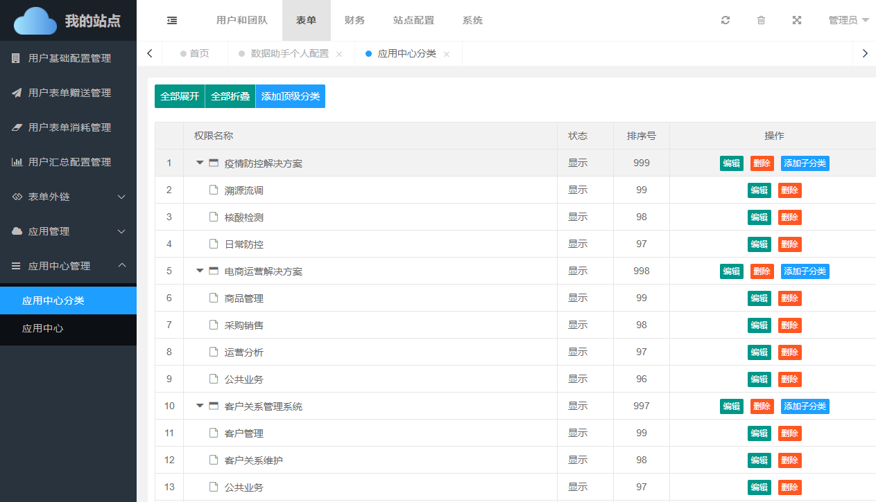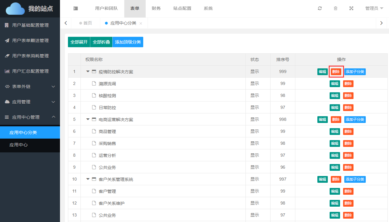 需要注意的是:如分类下存在应用或子分类,将无法删除。