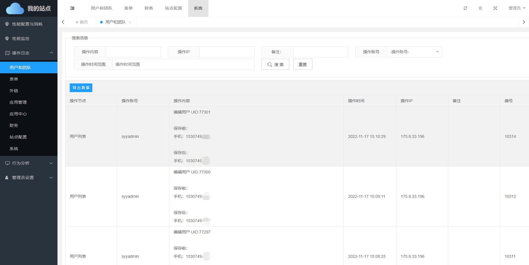 在日志列表中,会详细的记录每一项操作内容。