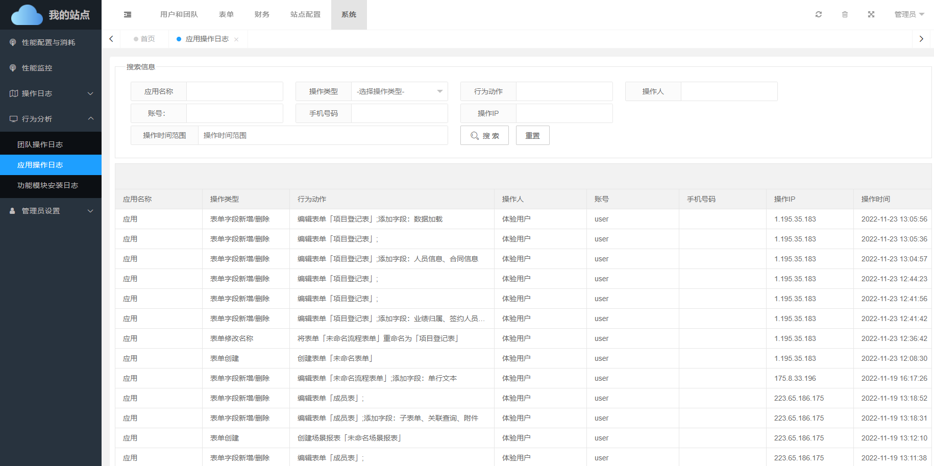 用户对应用所做的各项重要改动,都会记录在应用操作日志当中,方便管理员进行查询。