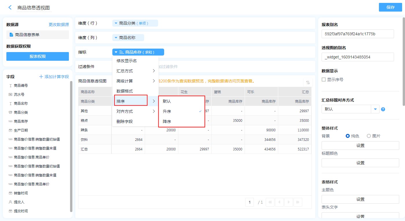 在报表使用过程中,为了方便数据的查看与管理,往往需要对报表中的图表数据进行排序。