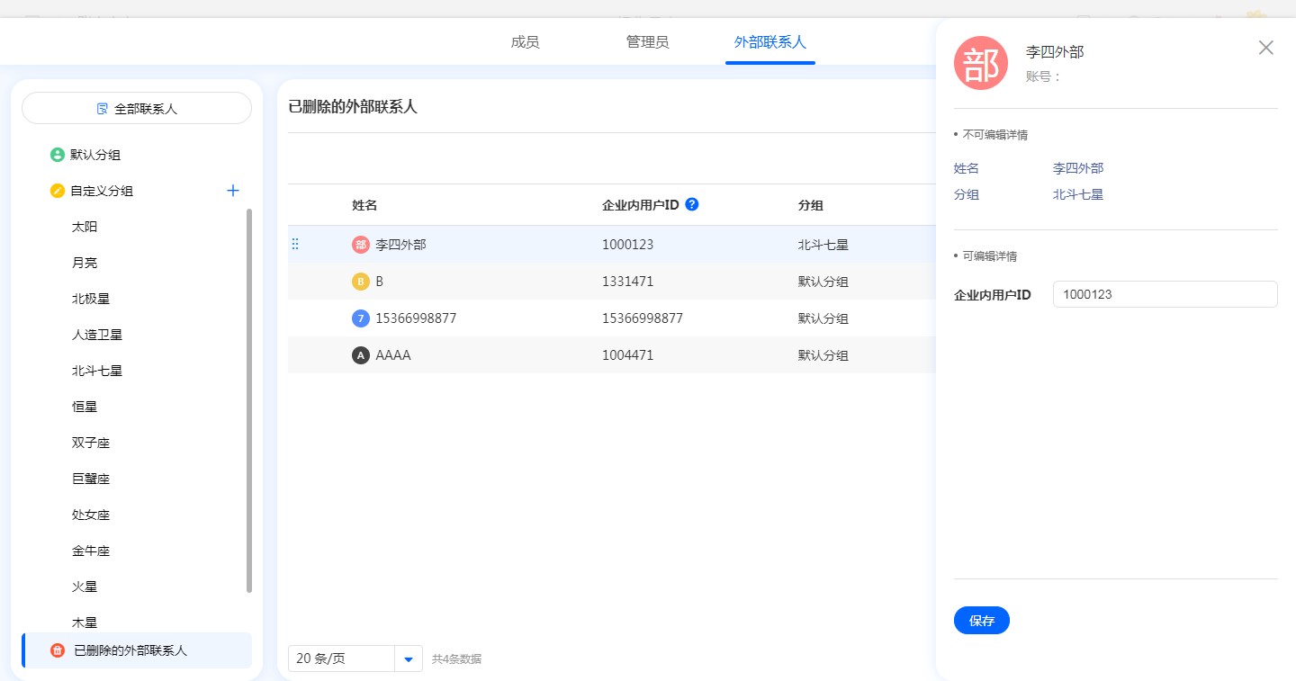编辑已删除的外部联系人 已删除的外部联系人支持编辑企业ID。