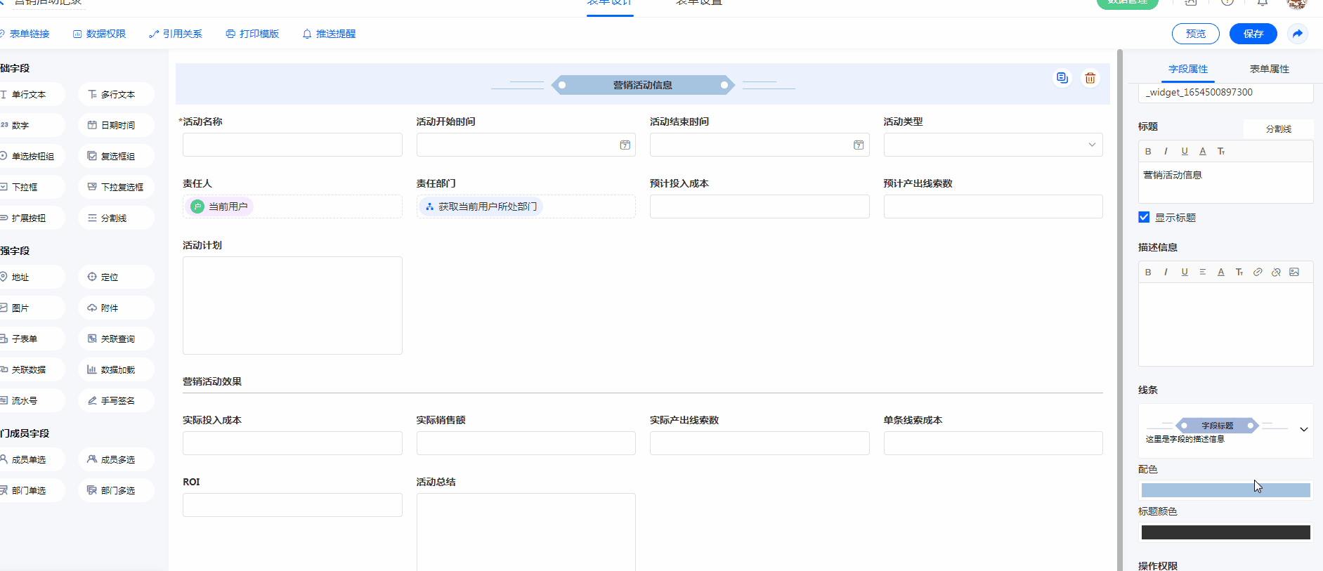 分割线支持配色和标题颜色,可根据表单风格自行设计。