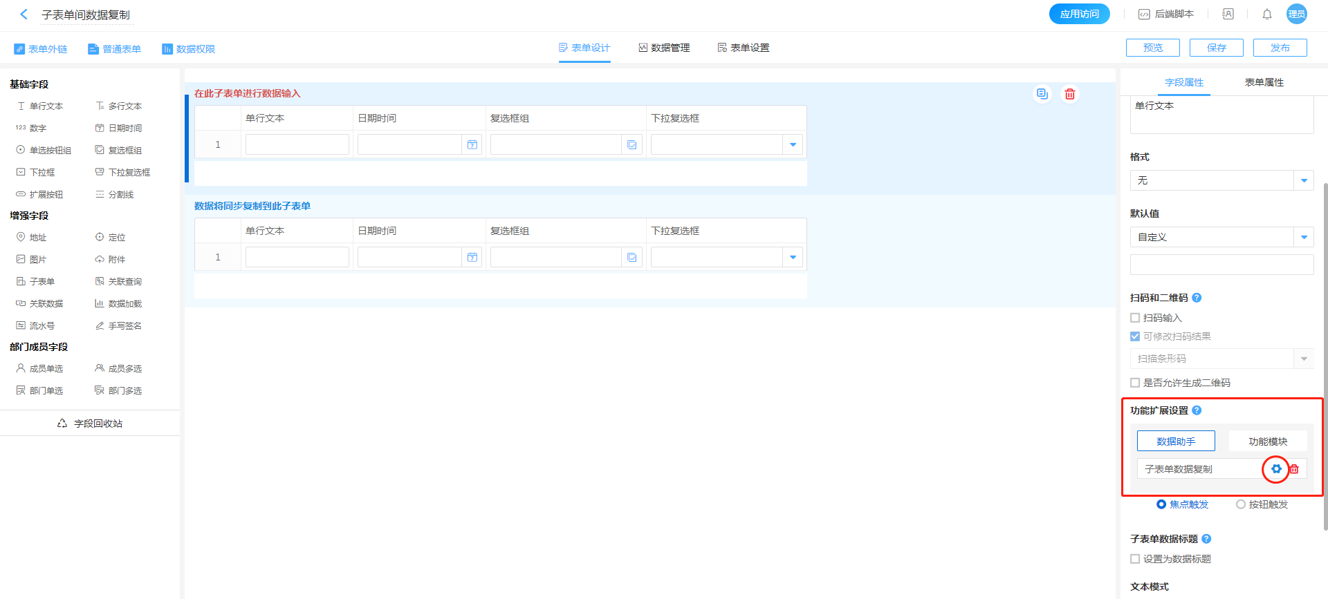 1. 重复[步骤1-4],将子表单内需要联动的控件一次设置完成。