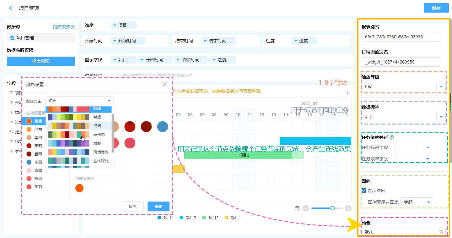 【排序规则】(按照指定的格式(升序、降序、自定义排序)对甘特图内的数据进行排序)