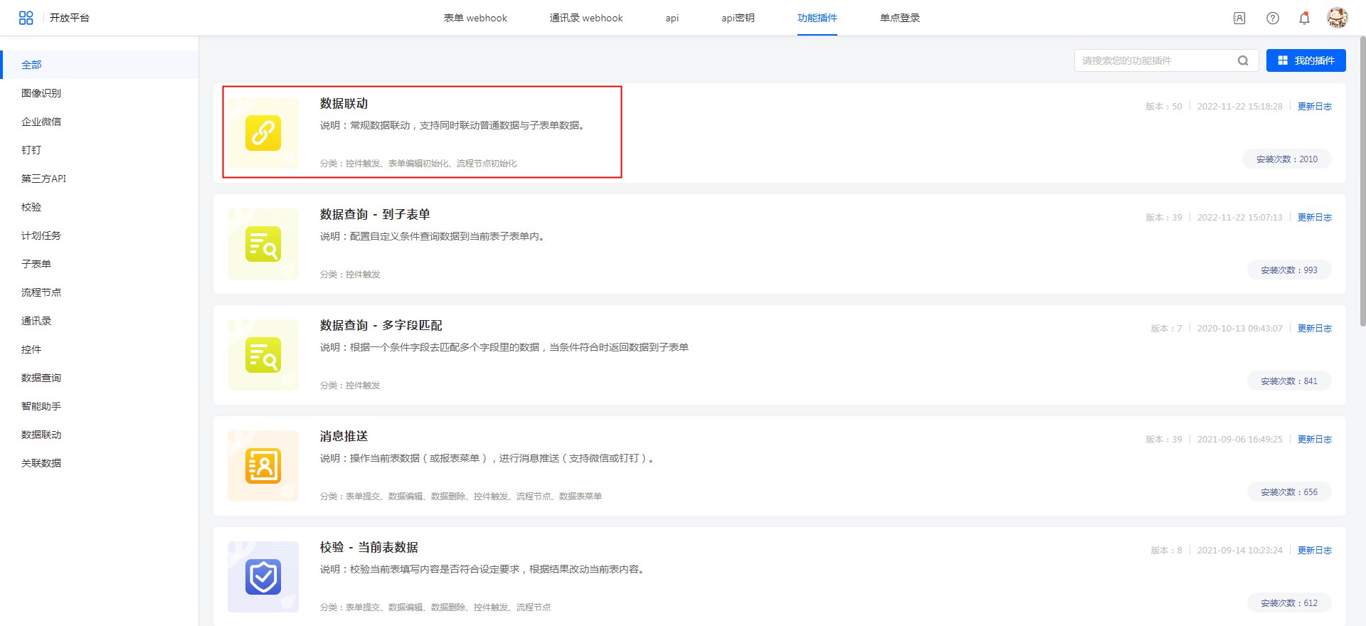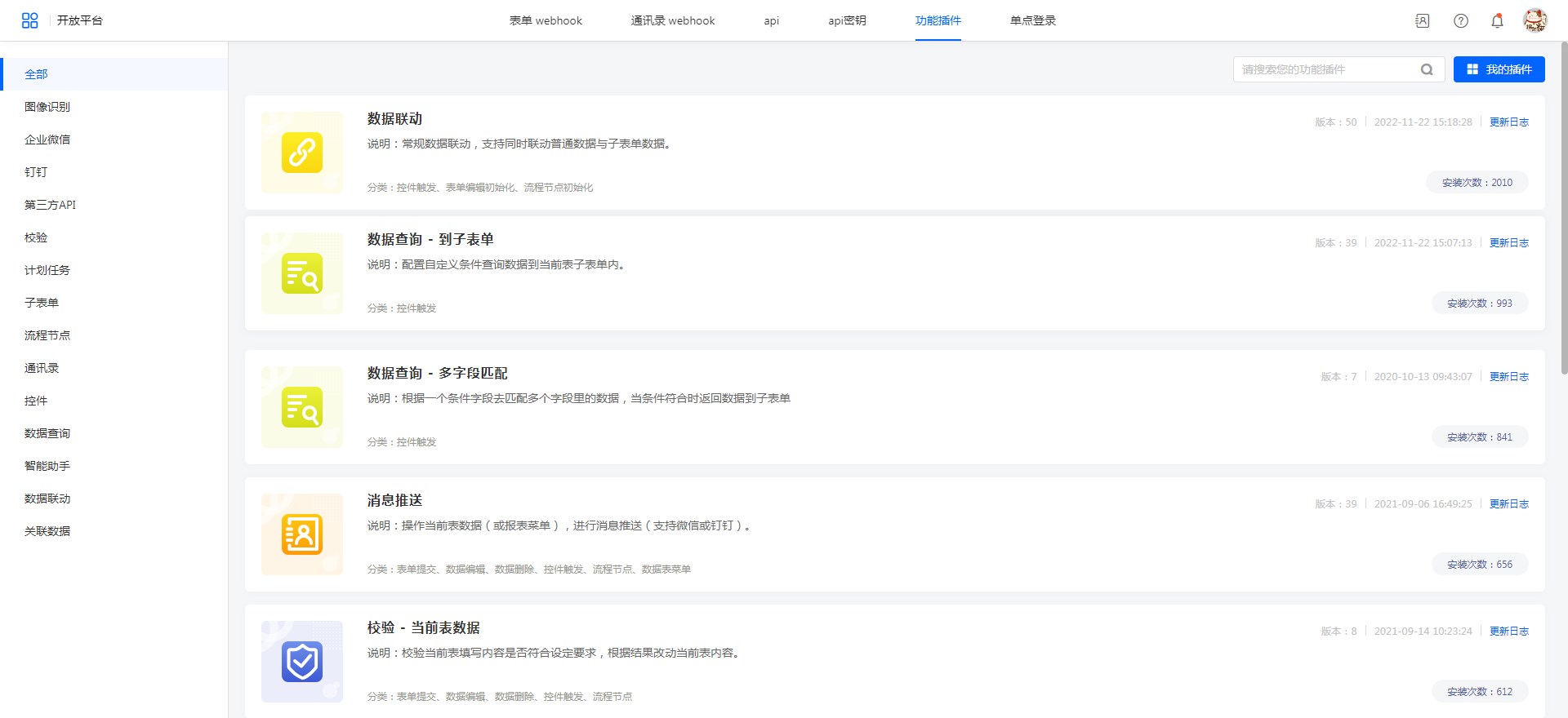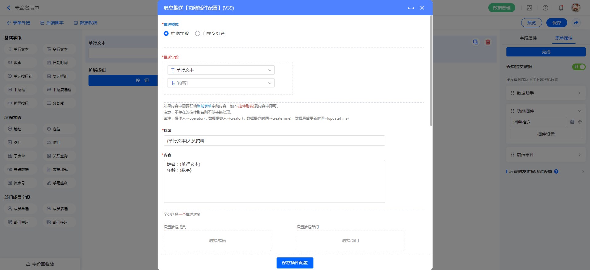 表单功能插件配置功能插件界面