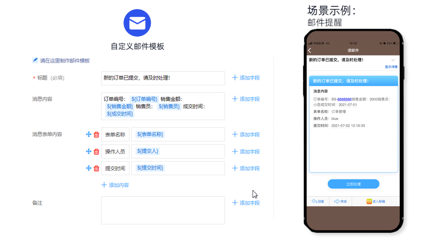 市面上常规的待办提醒功能较为固化,仅仅能套用固有的消息模板,如:您有一条待办提醒/您有一条转交提醒...