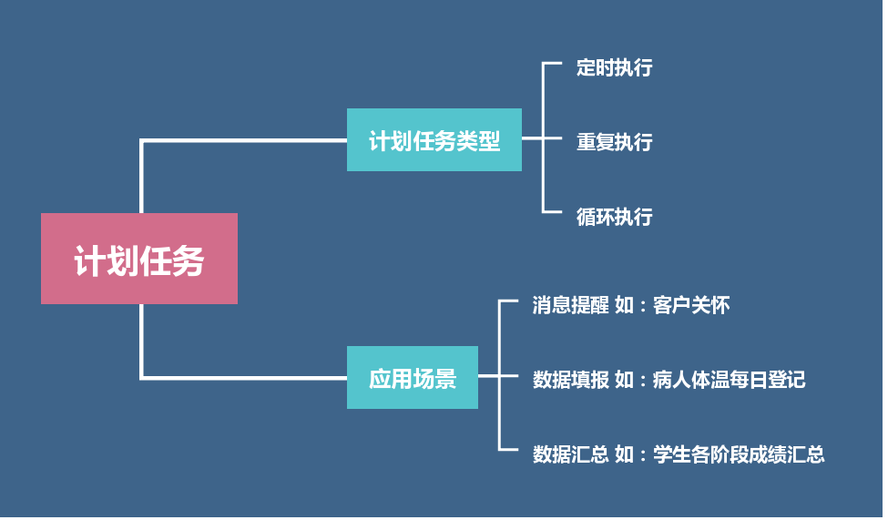 当日常工作需要定时执行一些重复性的事件时,可以通过计划任务功能来运行准备好的命令,在某个特定的时间定时、重复、循环执行。例如常见的商务客户关怀、品牌会员管理、家校通知等等。