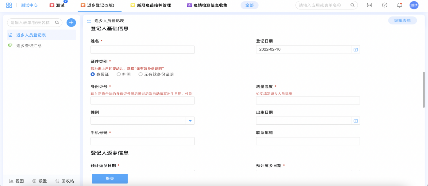 为了防范人员流动带来的风险,减少交叉感染,各大节假日临近时各地都会出台相应的返乡政策。借助线上的数字化平台进行返乡信息的登记既方便方向人员操作,同时也利于工作人员进行统一的信息收集管理。