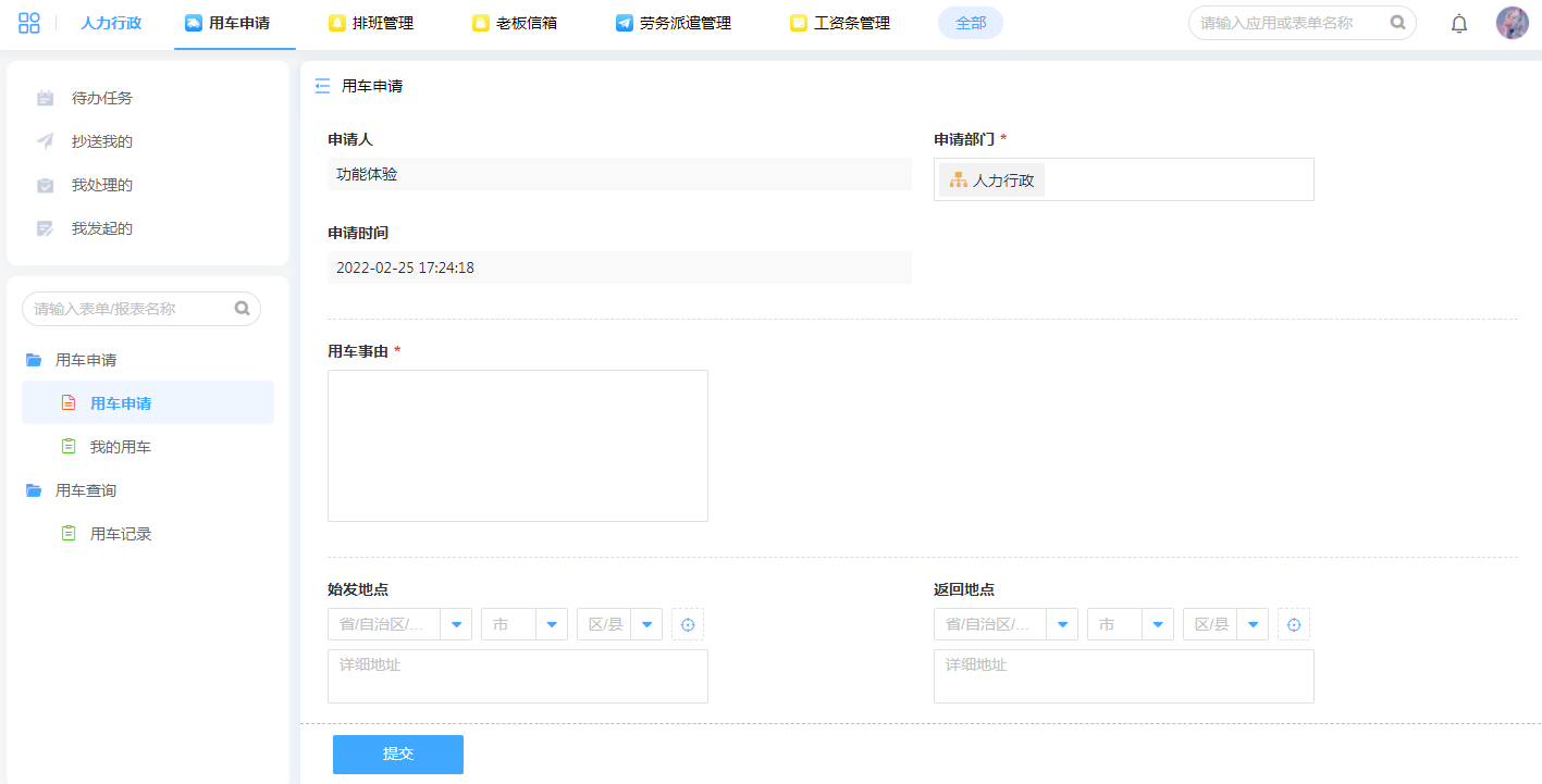 用车申请