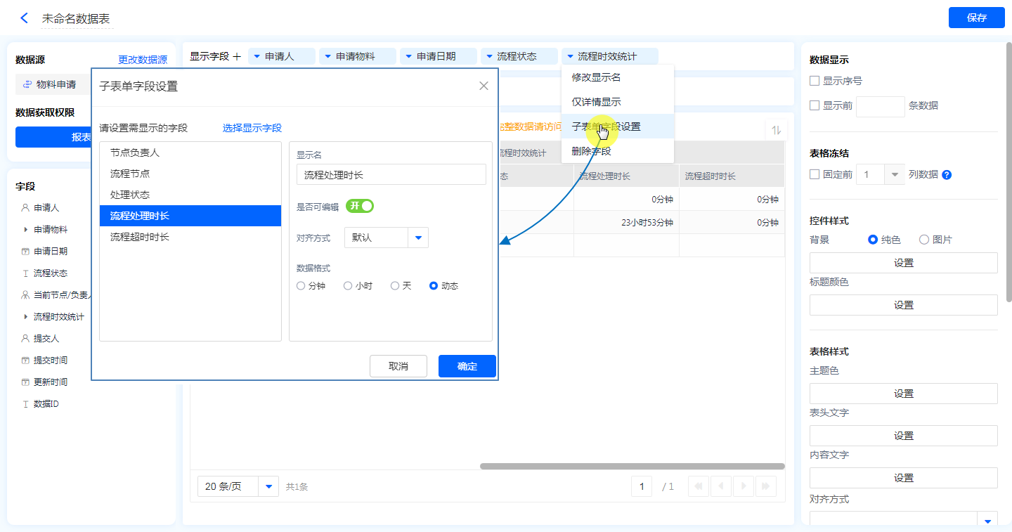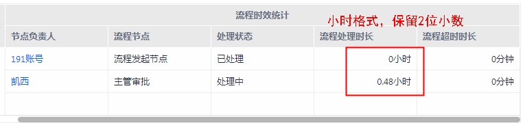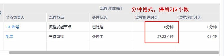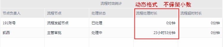 [流程时效统计]字段的子字段[流程处理时长]和[流程超时时长]支持设置数据格式: