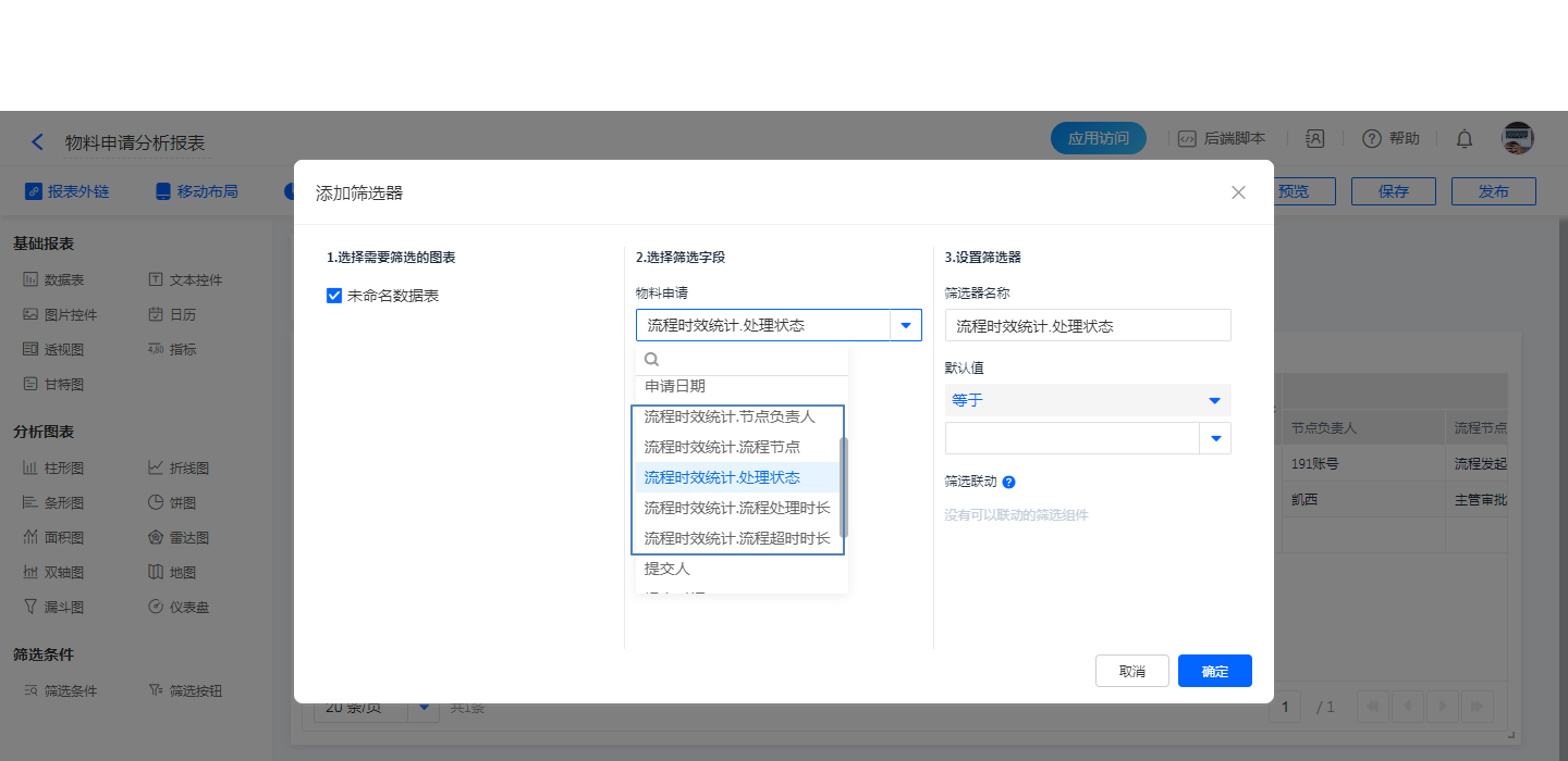报表过滤条件、报表筛选条件以及报表权限设置[流程时效统计]字段做条件
