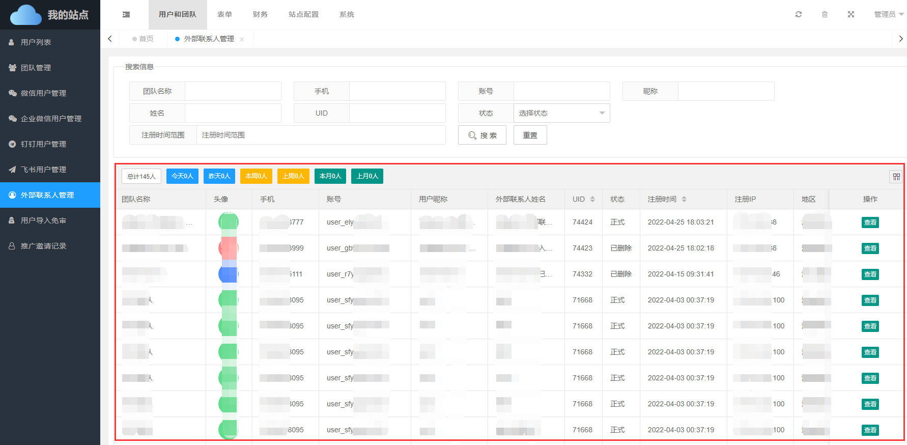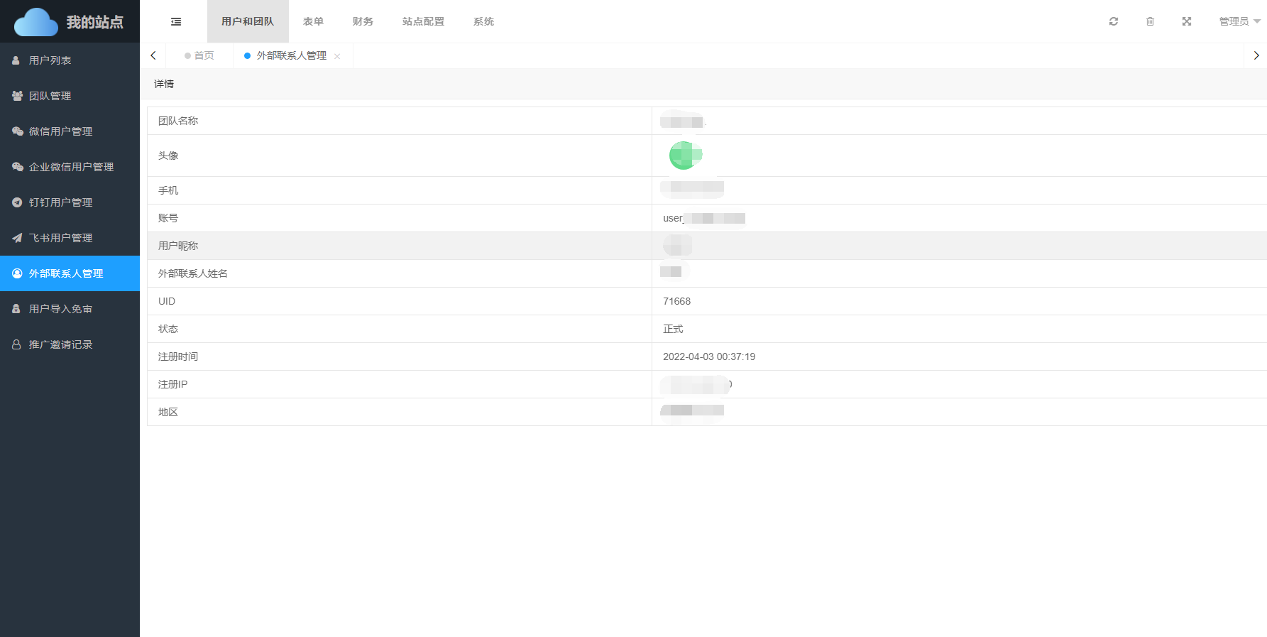 • 地区:外部联系人注册IP所属地区