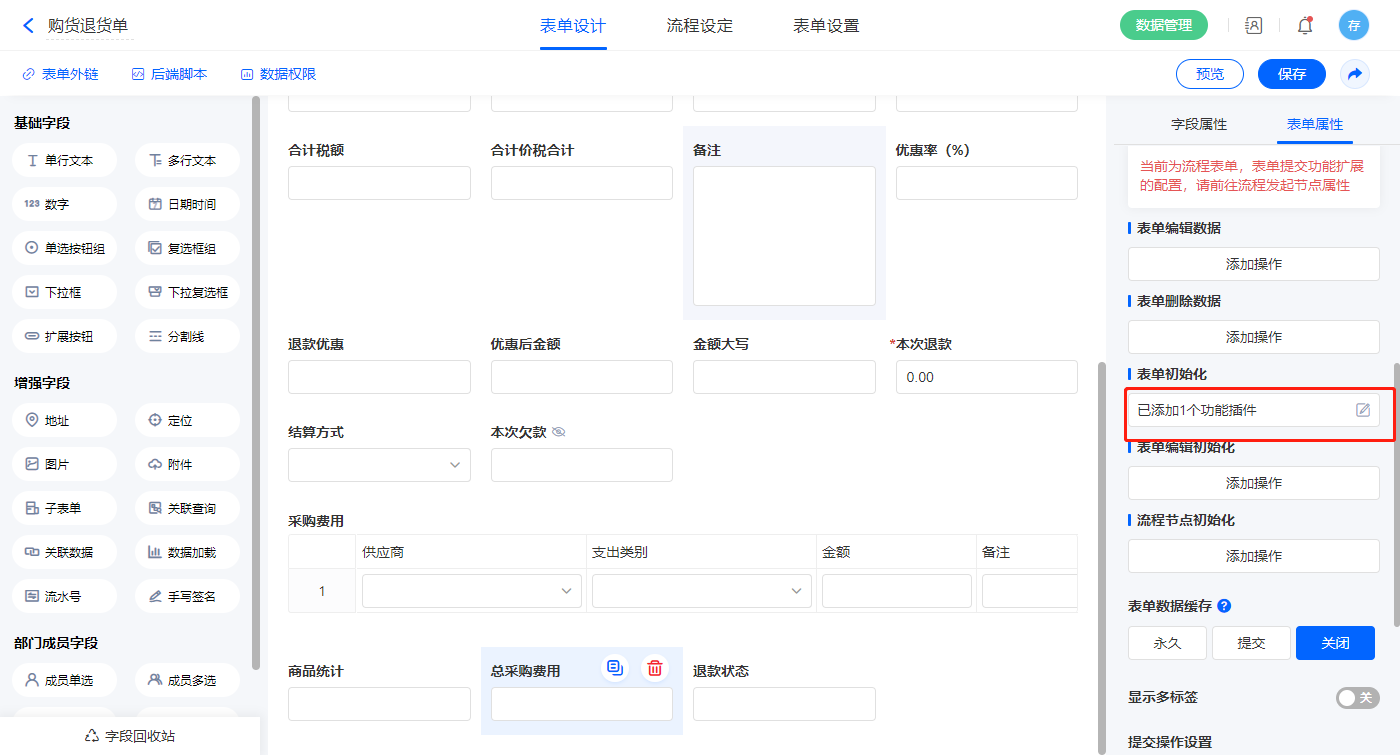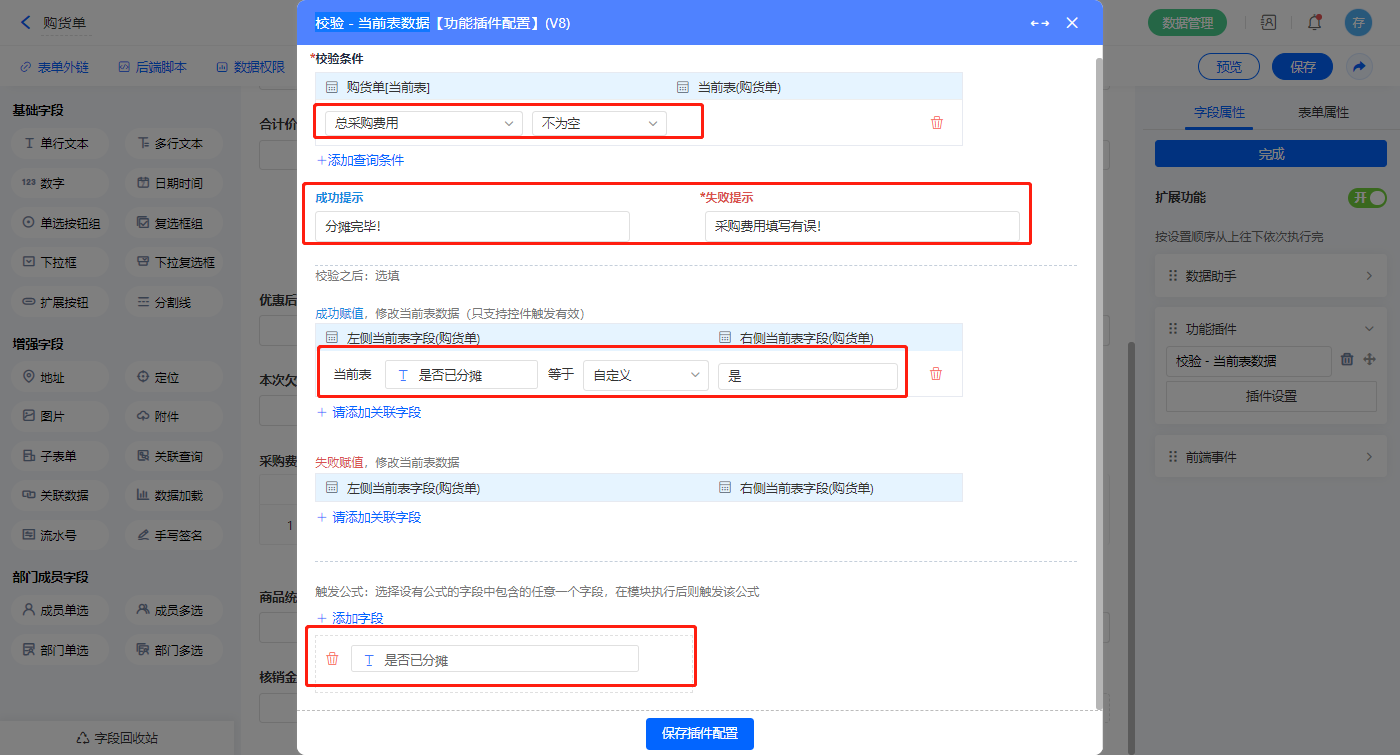 2)【支付明细.本次支付】字段添加功能扩展设置,添加功能插件【控件 - 触发指定公式】;