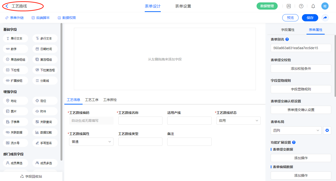 | 产品属性 | 单行文本 | 工艺路线名称 | 单行文本 |