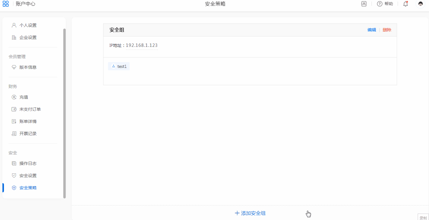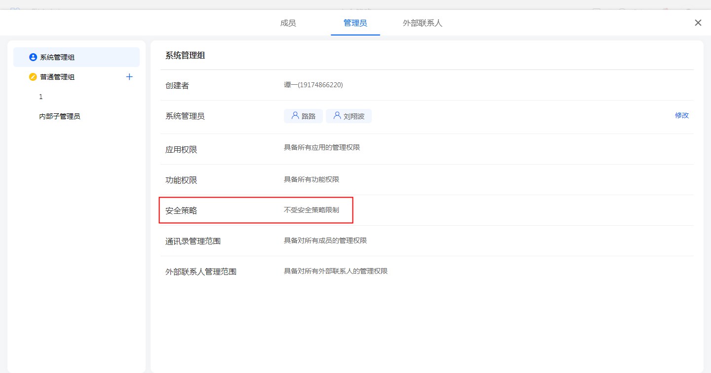 【头像】->【账户中心】->【安全策略】,并添加相应成员设置;