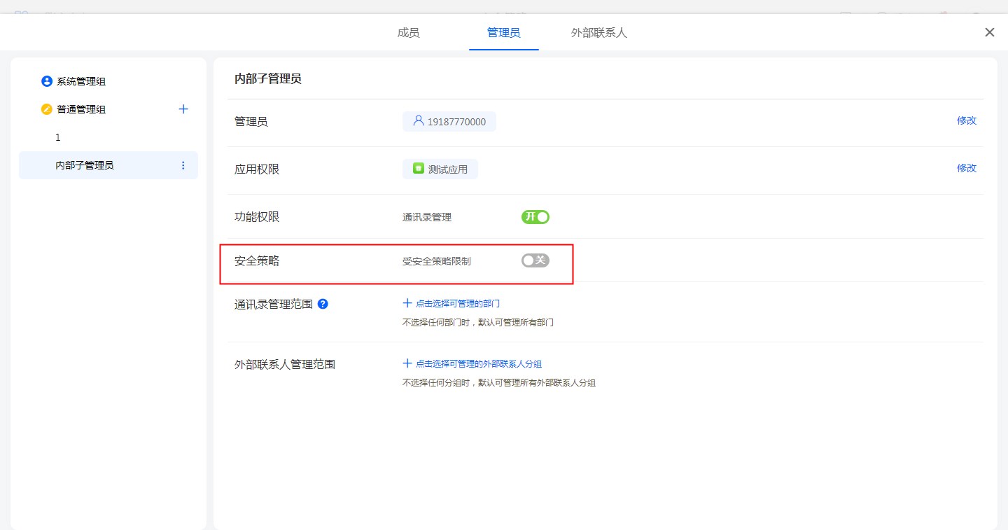 • 子管理员需要开启设置才会生效,否则不生效。