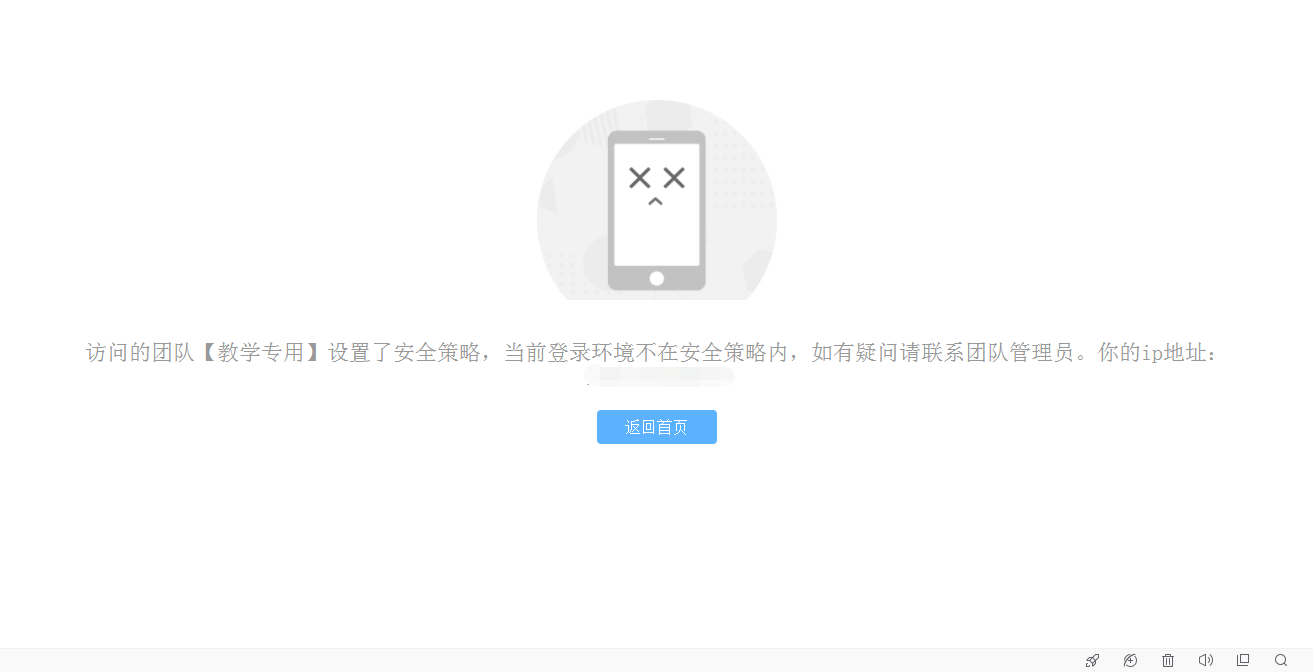 • 不在安全IP范围内的用户访问团队的时候会直接提示:当前登录环境不在安全策略内;