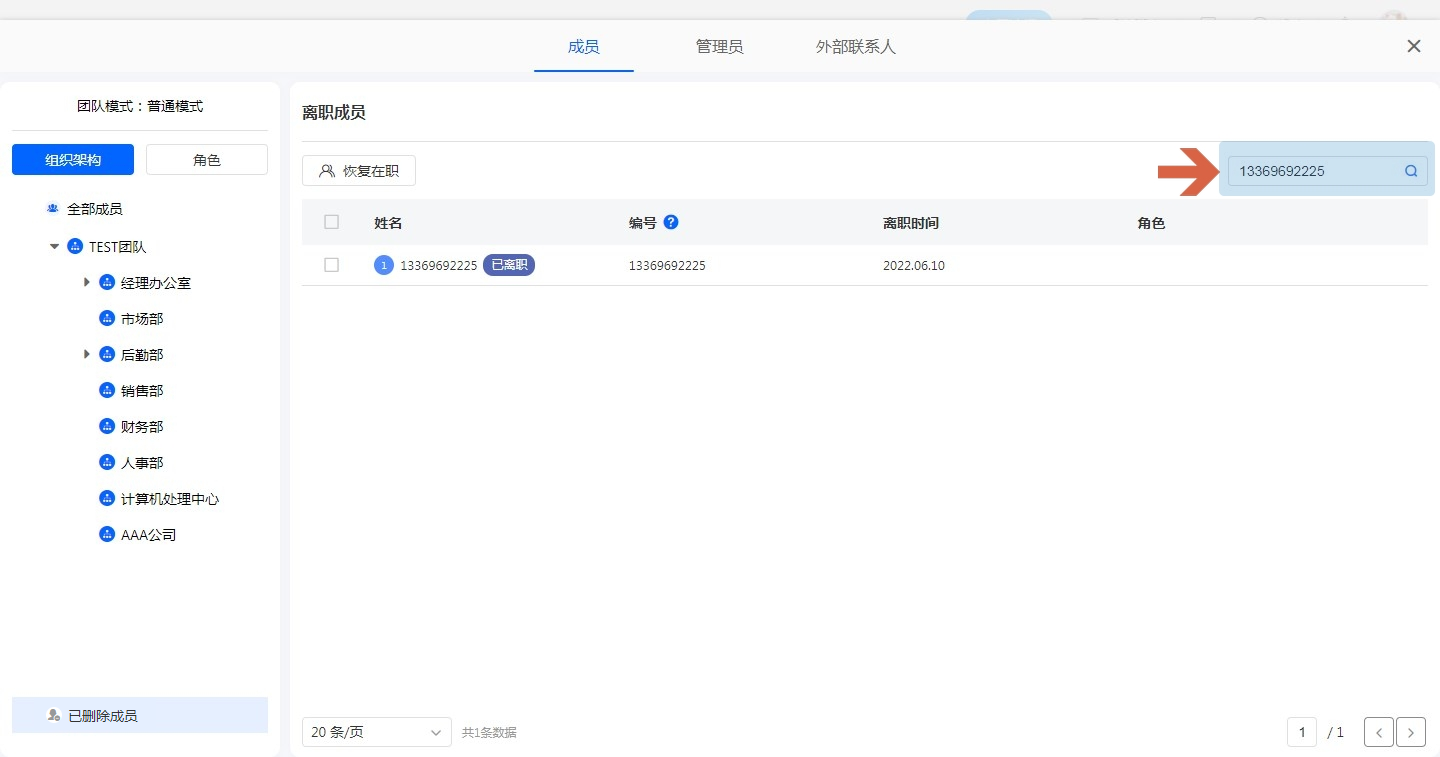 已删除成员搜索