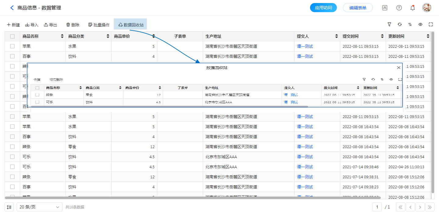 数据回收站即我们在后天数据管理中已删除的数据就会暂存至数据回收站,便于我们在误操作时可以恢复数据。
