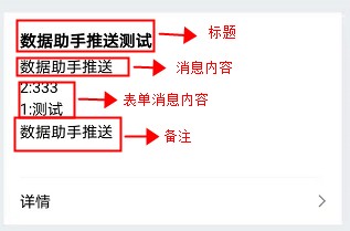 注意:收到的测试消息中,普通字段会以字段名称代替。