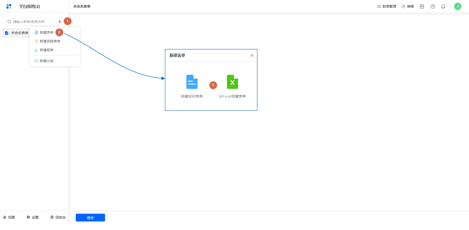 • 新建表单