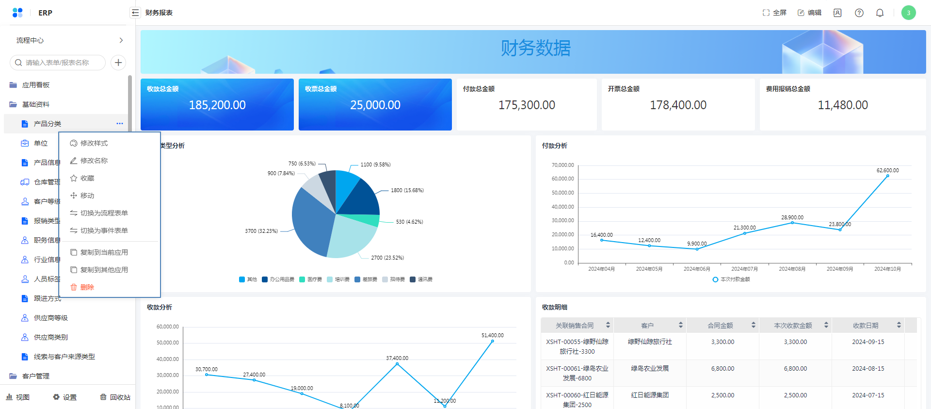 在访问应用后,对应用具有管理权限的管理员,可以对应用内的表单和报表进行编辑与设置。