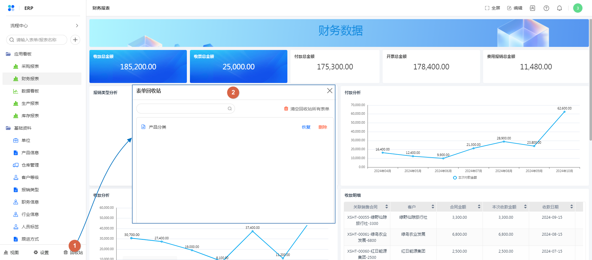 在回收站中,可以恢复已删除的表单/报表,也支持彻底删除表单/报表。