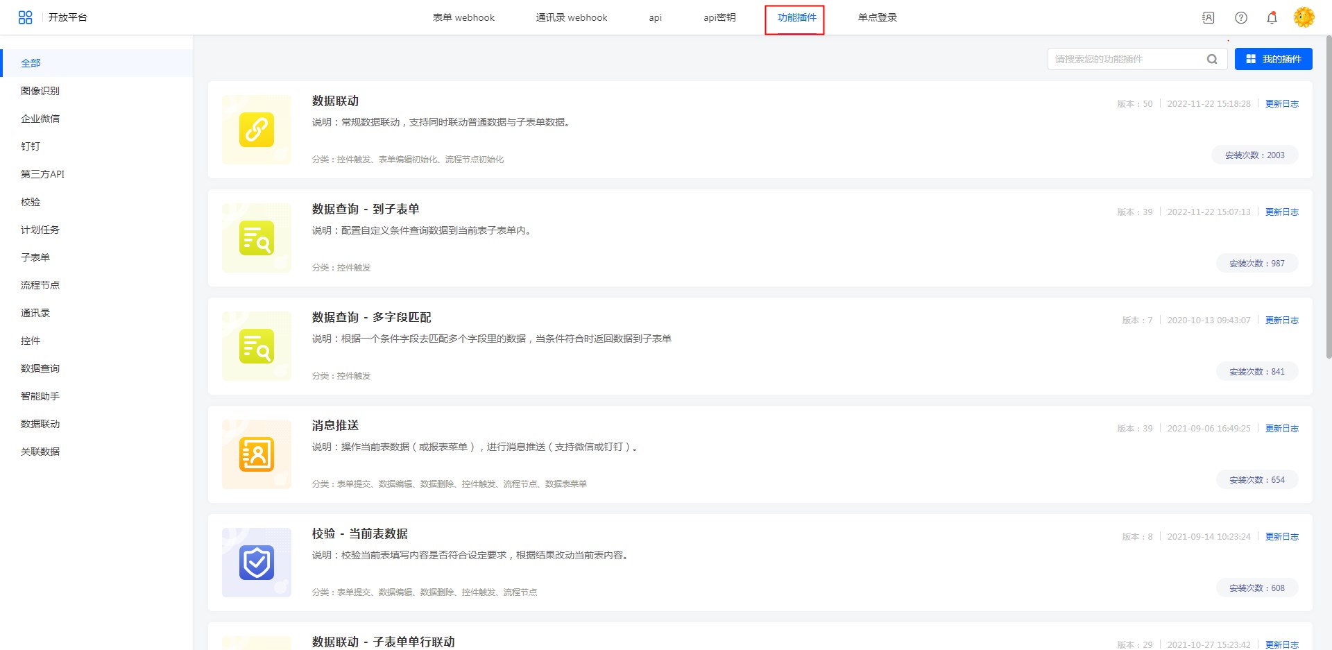 • 开放平台-功能插件管理