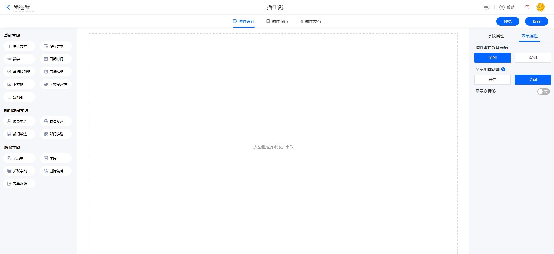 • 表单控件、表单属性、流程节点、报表菜单、计划任务等支持添加功能插件的位置