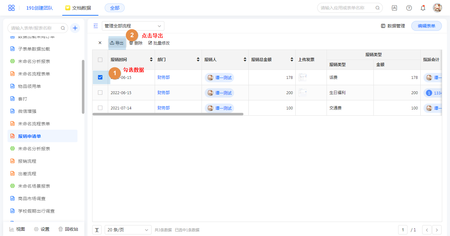 当将表单中的数据导出并修改后,希望再次导入时只更新excel中修改的值时,可在导出数据时勾选【同时导出data_id】。