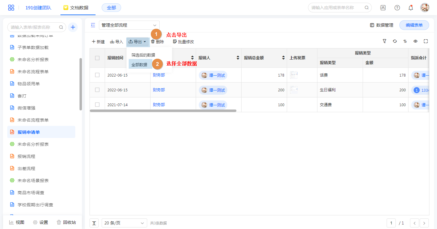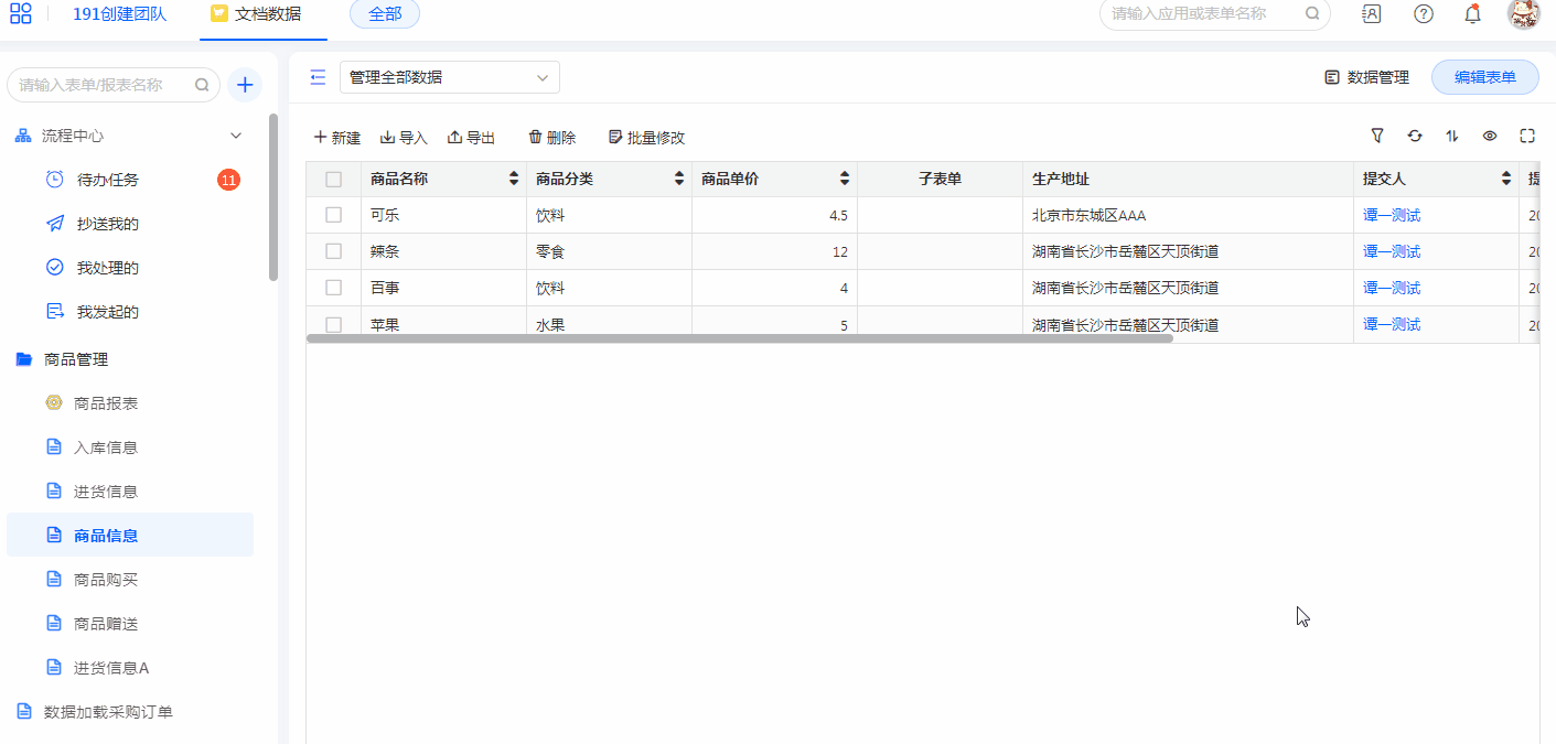• 导入入口为【表单】——【数据管理】——【导入】。
