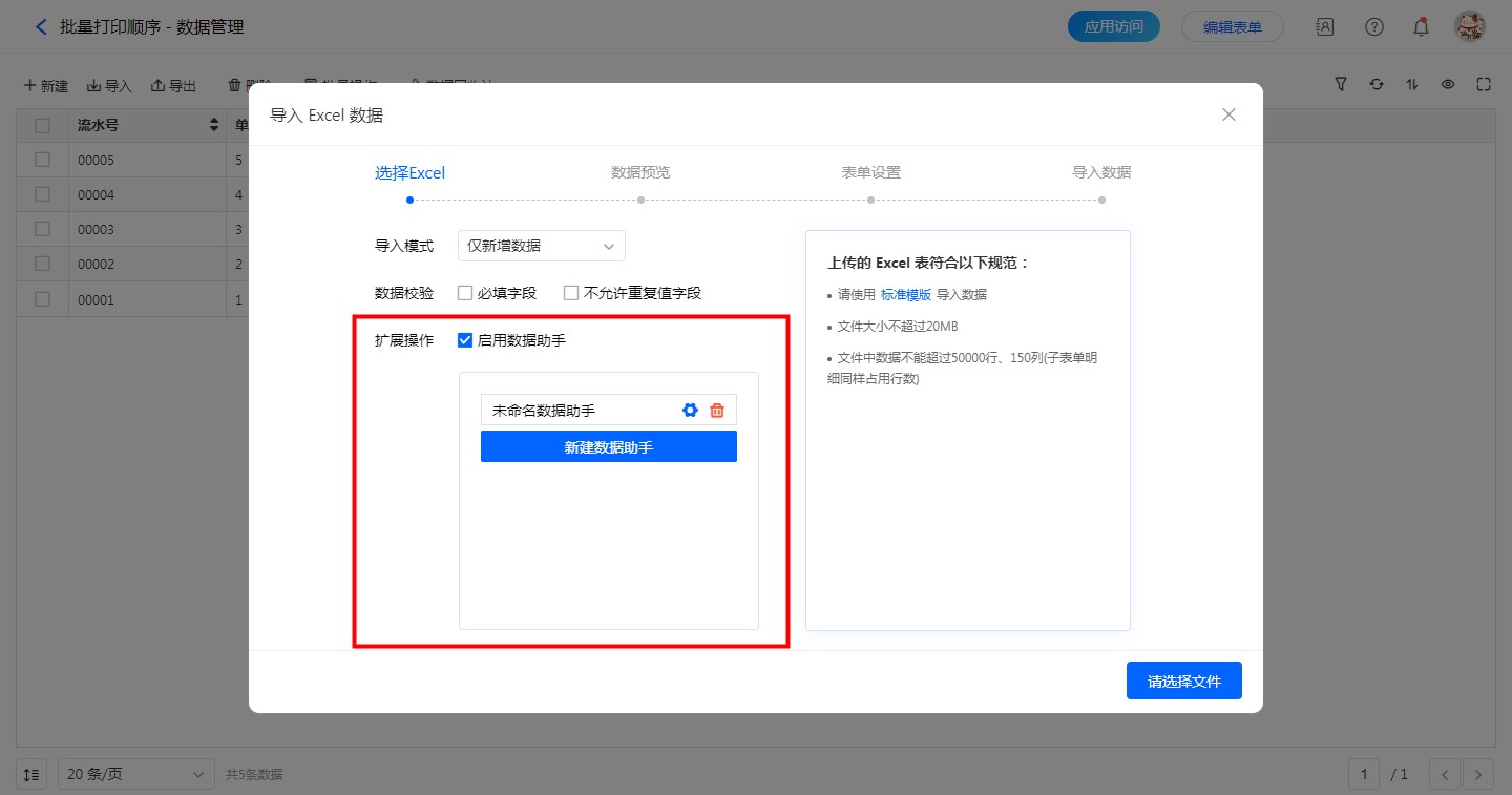 支持配置数据助手,配置完成后,在导入数据时会触发数据助手,数据助手参考数据助手。
