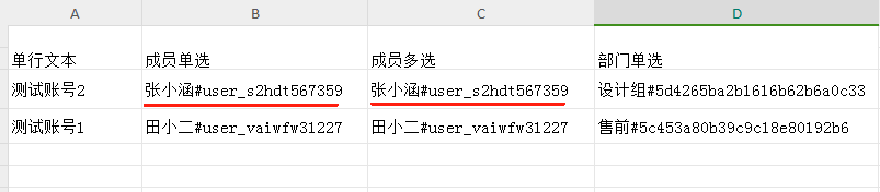 下载好以后,可以看到重名成员的账号。然后在原始数据中将成员名称一栏中重复名称的数据对照错误信息表编写成「成员#成员账号」的形式。