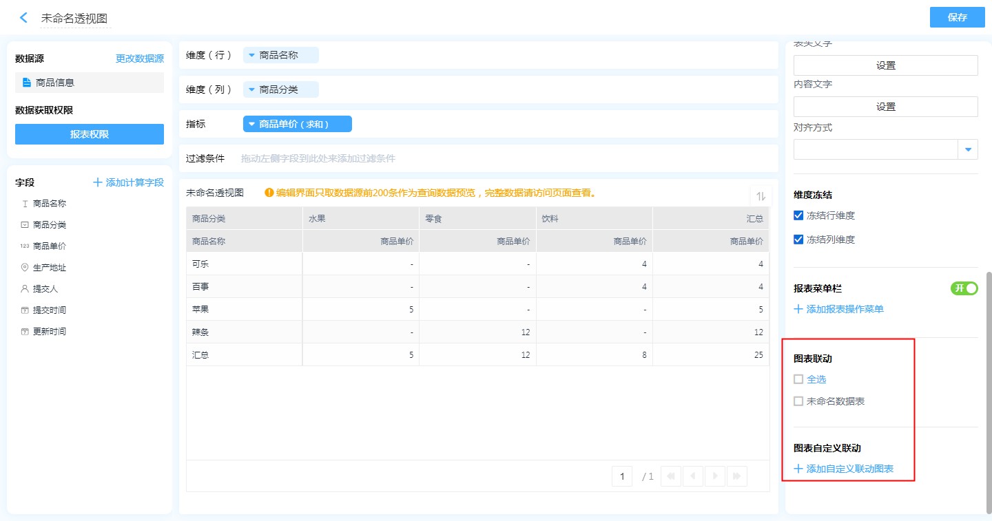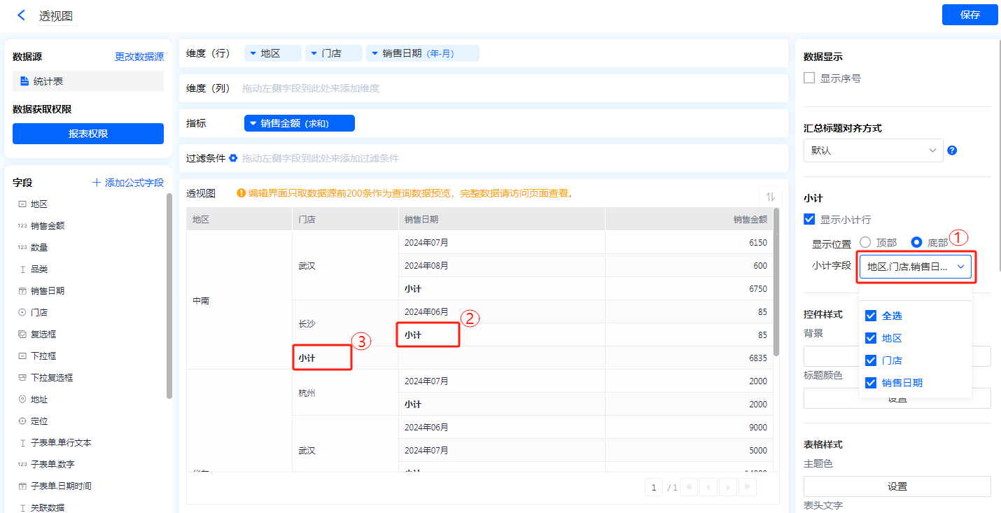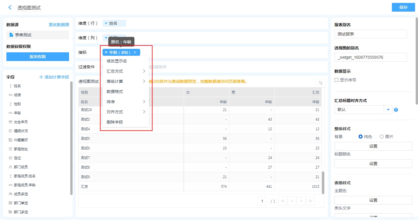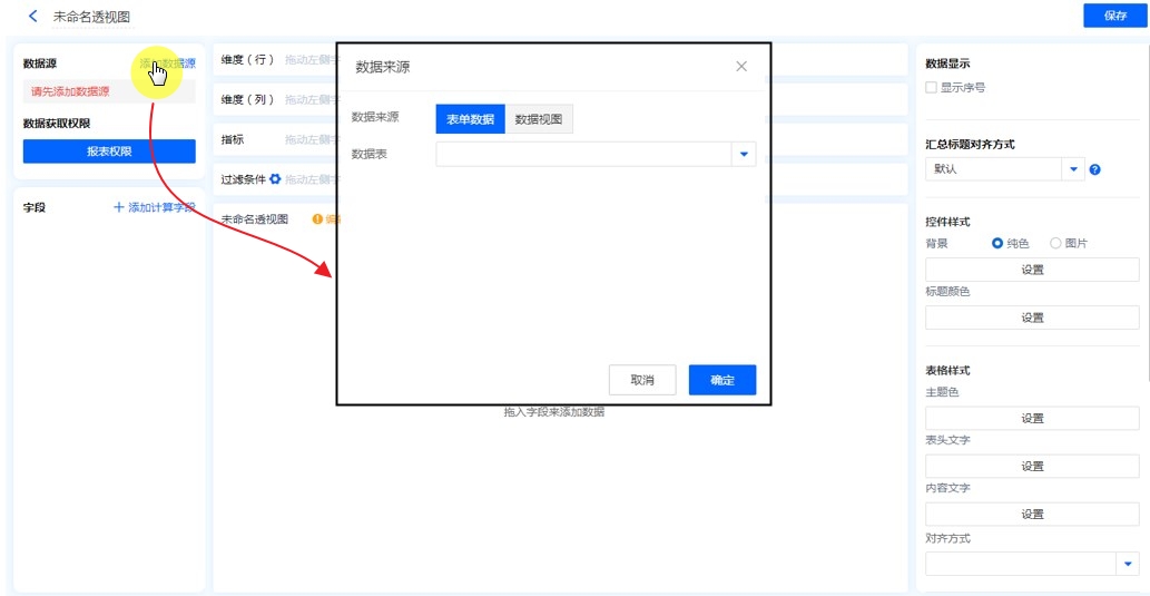 数据源就是指当前透视图的数据来源,可以是表单、数据视图。