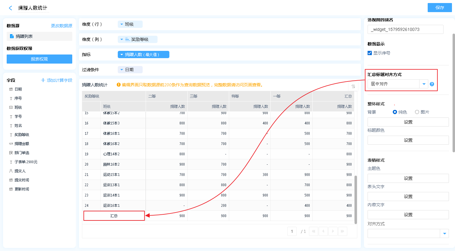 汇总标题对齐方式