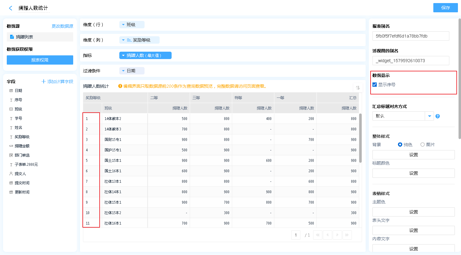 可以设置当前数据表是否显示序号。