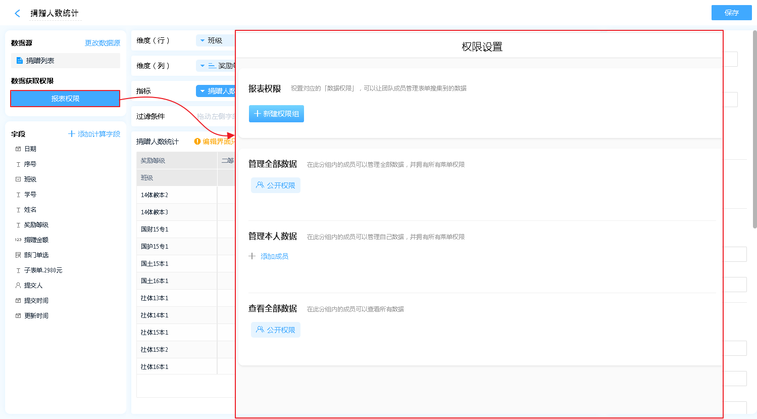 报表权限是指该报表的数据哪些人可以操作报表的数据,分别有什么操作权限。