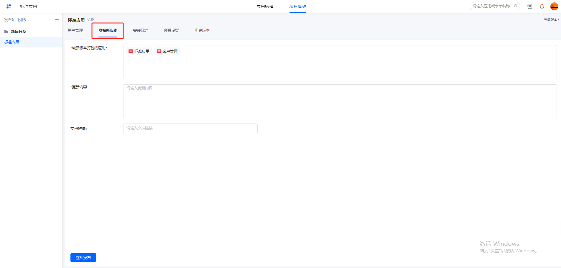 点击左侧项目,右侧面板点击「发布新版本」,填写更新内容,点击立即发布 发布新版本。如下图所示: