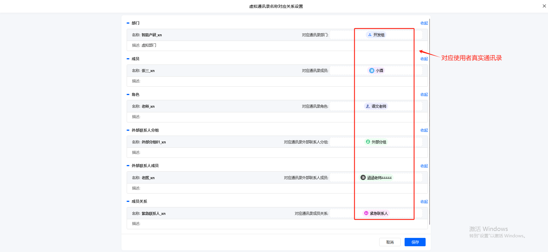 点击已安装好的标准应用,设置虚拟通讯录名称对应关系 即可进行使用。如下图所示:
