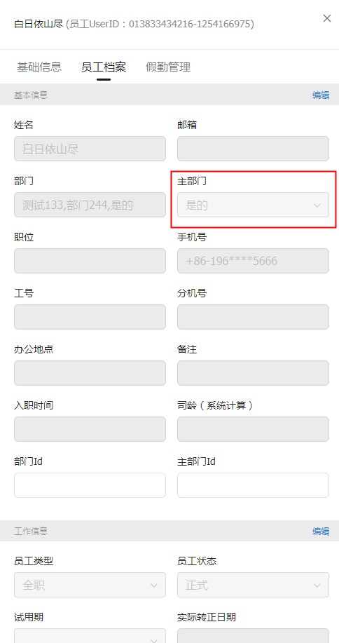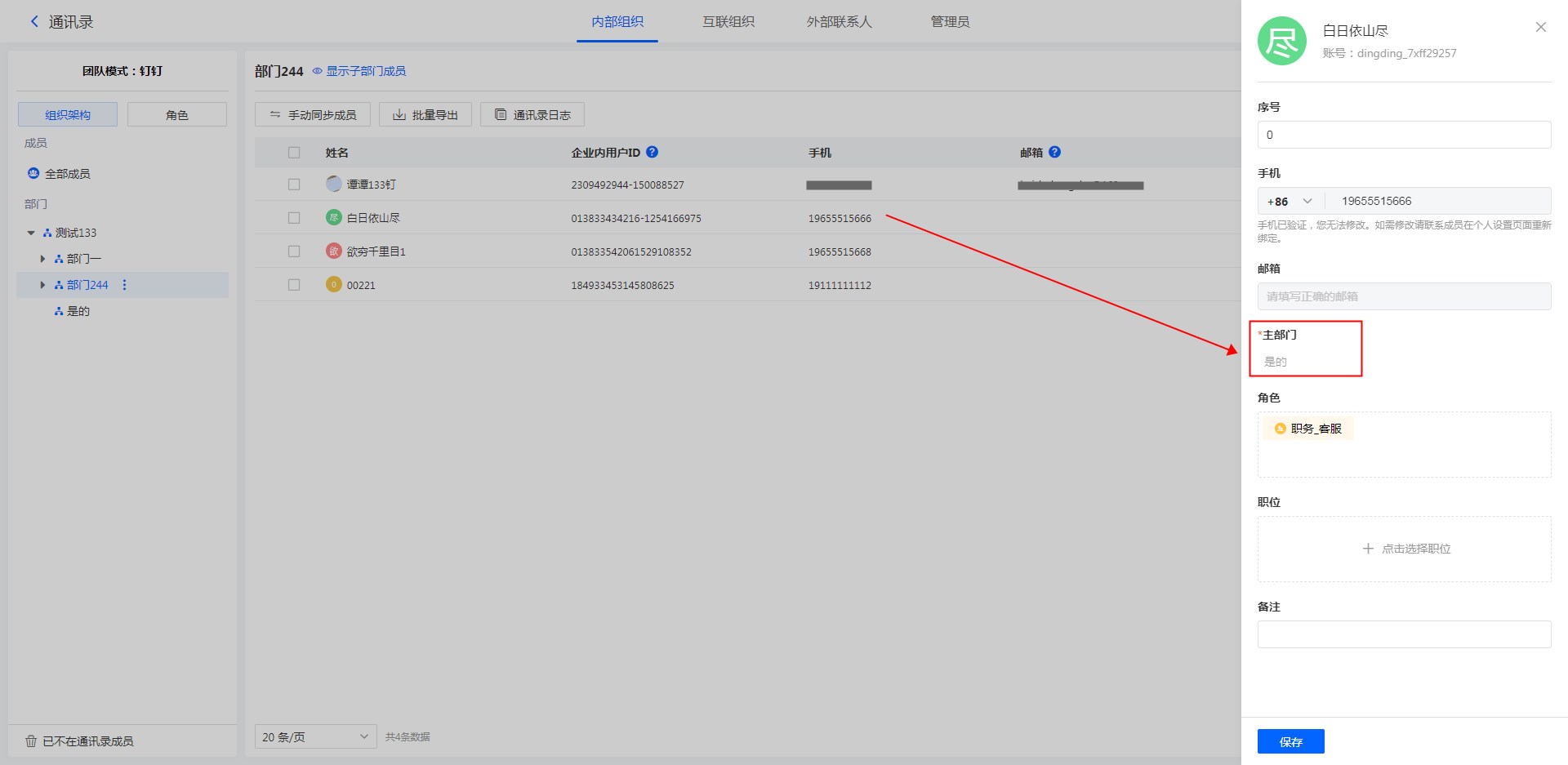 钉钉主部门 同步到平台通讯录后,成员主部门信息