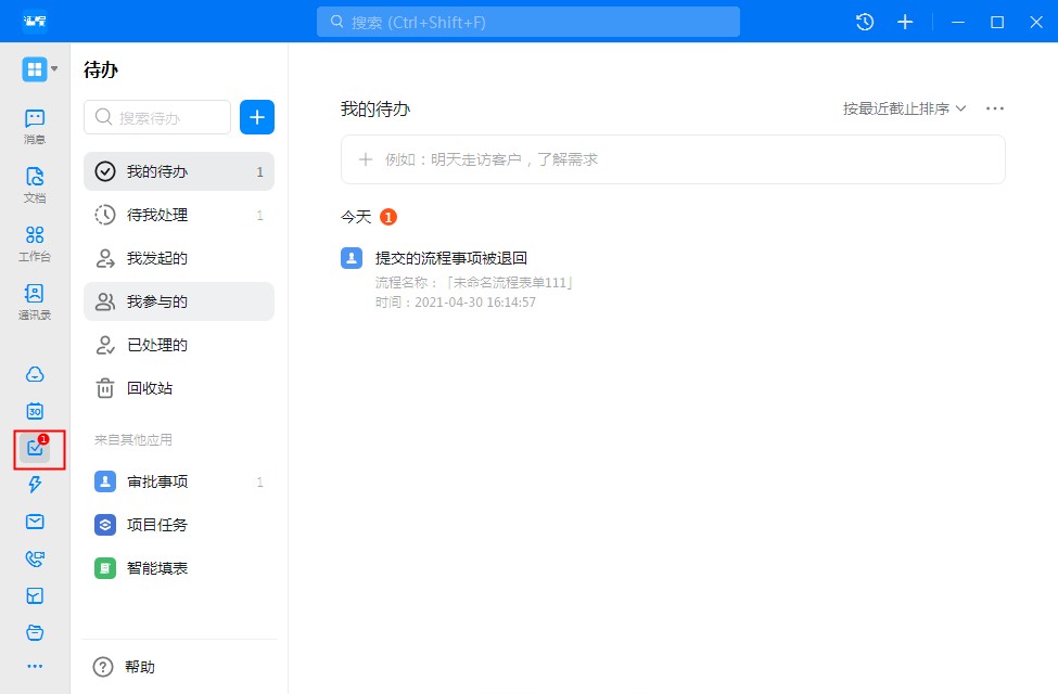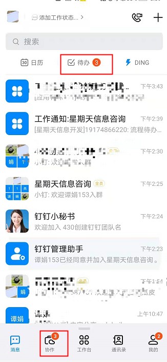- 在消息列表-工作通知中,收到推送消息,点击消息可以进行处理。