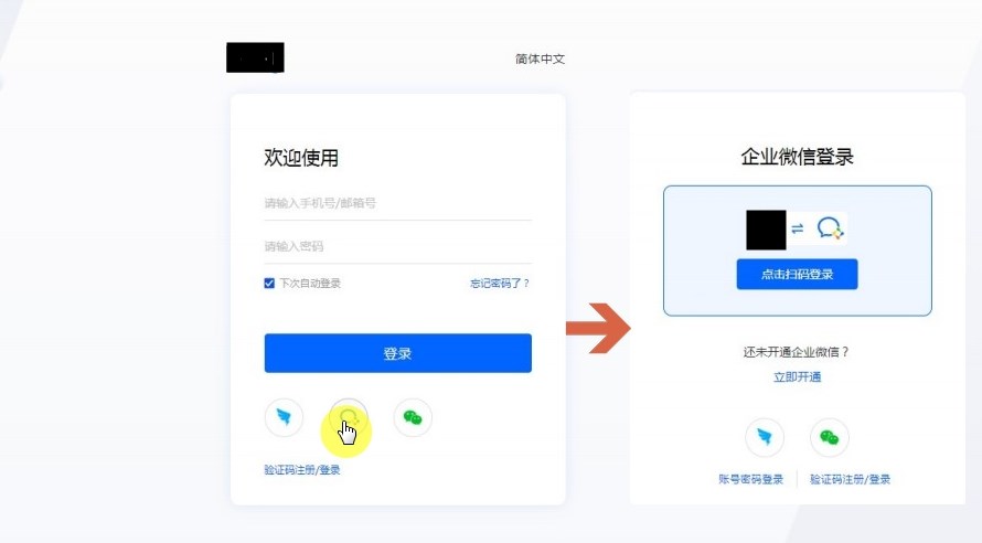 使用企业微信团队模式后,企业成员可以在登录页面选择企业微信登录模式。