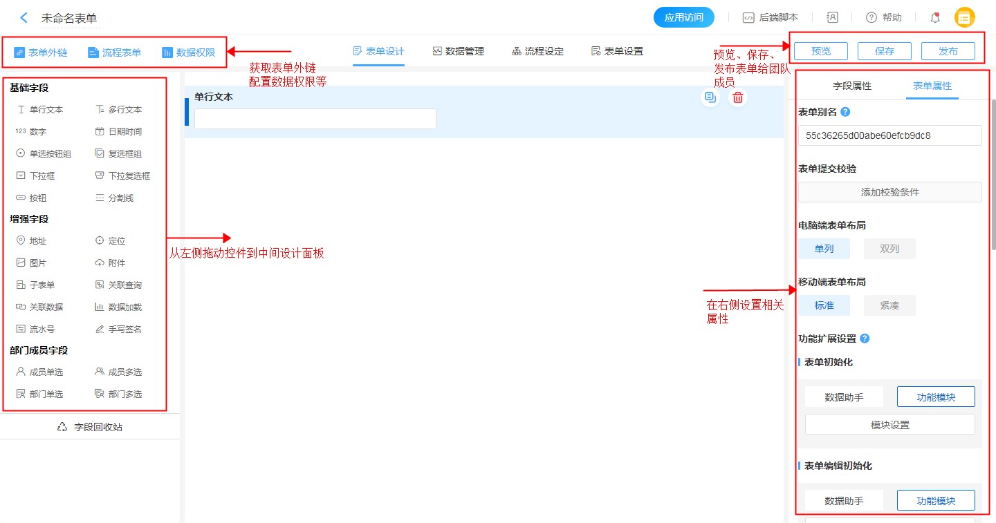 步骤:应用管理 > 新建表单 > 创建空白表单