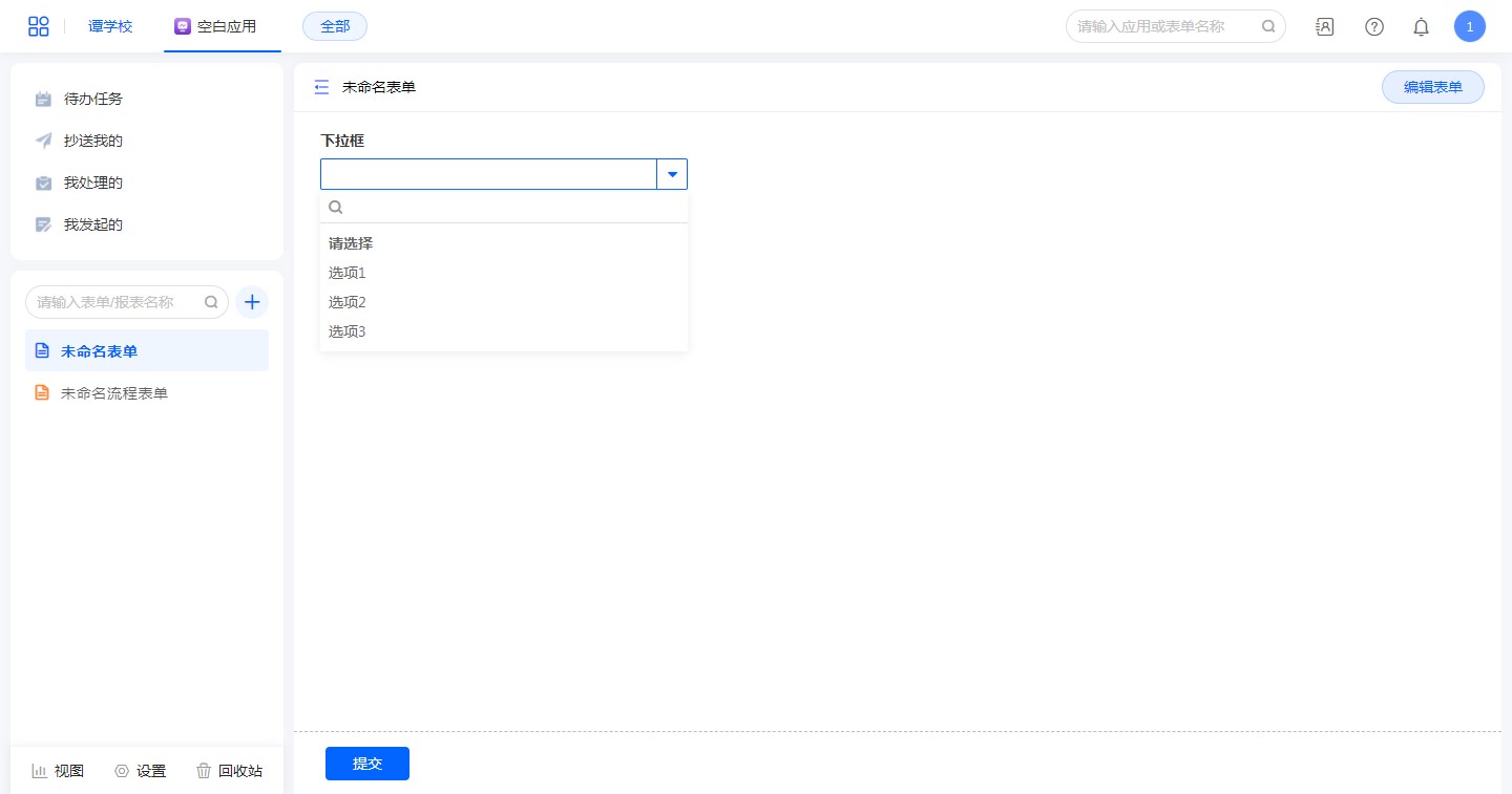 “下拉框”控件字段,可以修改转为“单选按钮组”或“单行文本”。
