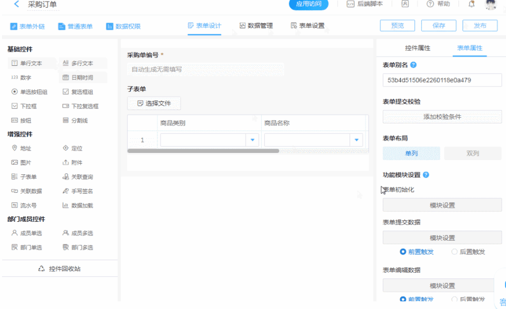 子表单数据加载可以将其他表单的数据提取到当前表单并填充到当前表单的子表单内,可用于加载商品信息,业务数据等场景。