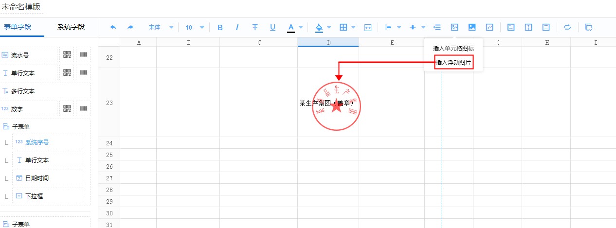 • 不支持图片类型的字段,如图片、二维码、手写签名等。