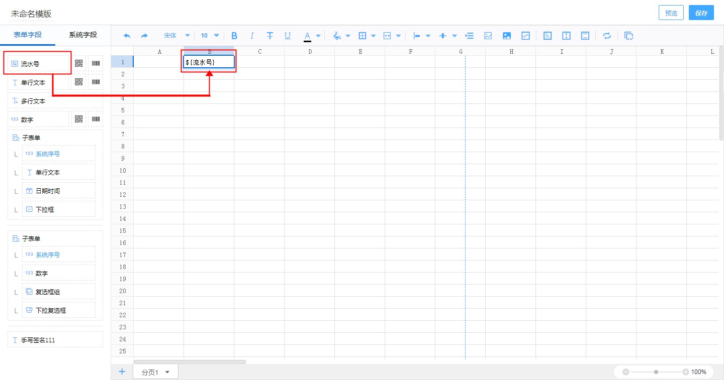 • 序号的打印可以很直观地看出明细数据的条数,也可以使得打印的数据更加整齐有序。常用于进销存管理中的出入库单打印、报价管理中的合同打印等,这些都需要将明细数据序号也打印出来等。