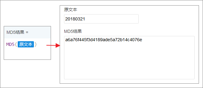 返回文本字符串的md5值,此md5返回的是32位长度的字符串。