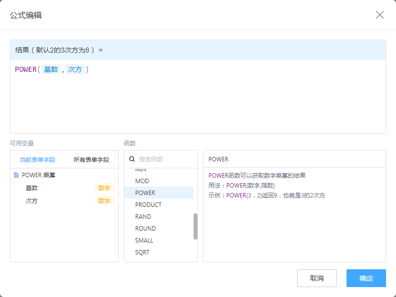 返回数字乘幂的结果,也就是“number”的“power”次方。
